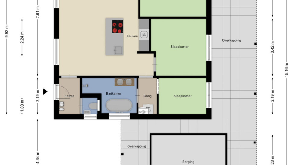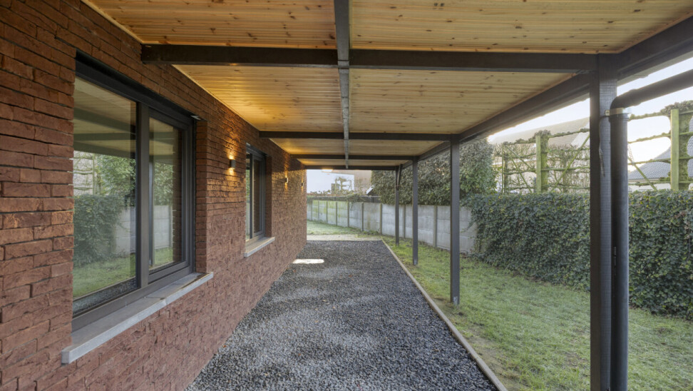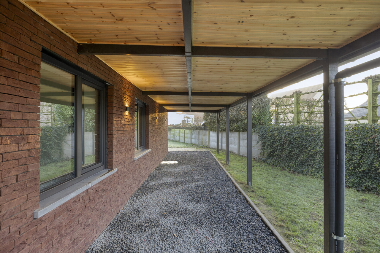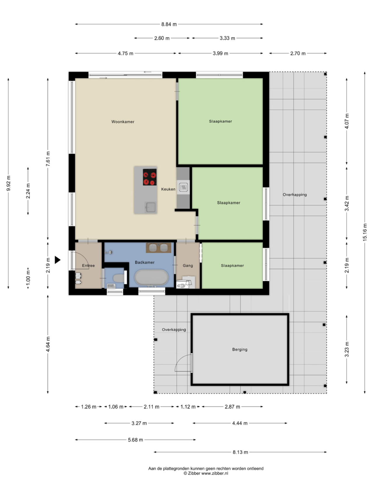 Buiten : tuin, overkapping ter hoogte van de achtergevel, oprit en tuinberging 4,44 m x 3,23 m.