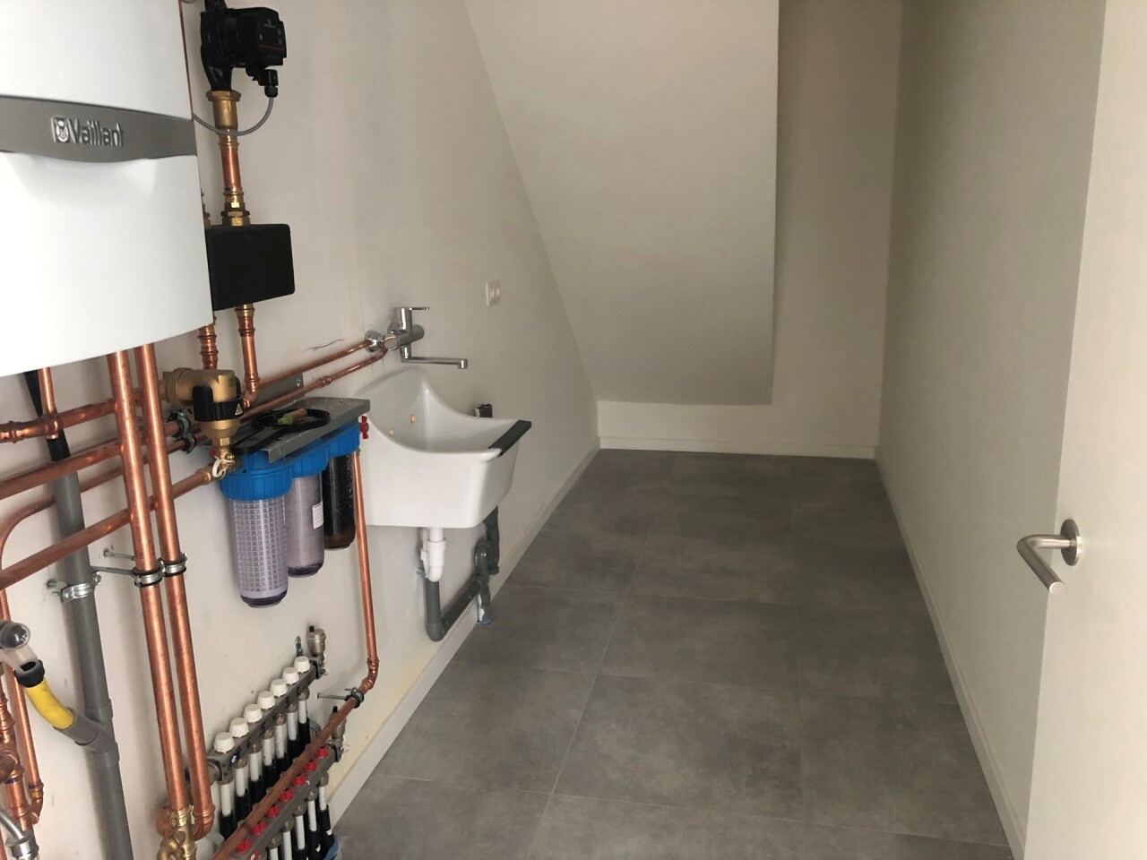Berging / wasplaats : 8,00 m² : tegelvloer, wastafel, aansluitpunt voor wasmachine, aardgas combiketel Vaillant.