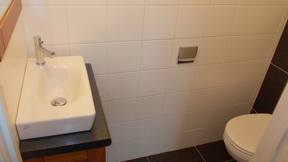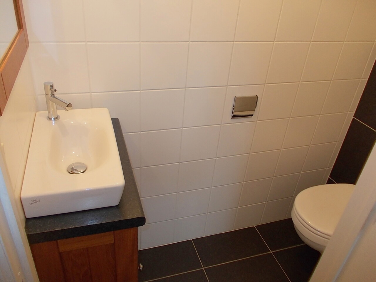 INKOMHAL : met gastentoilet, trap naar verdieping, vestiairehoek, tegelvloer.