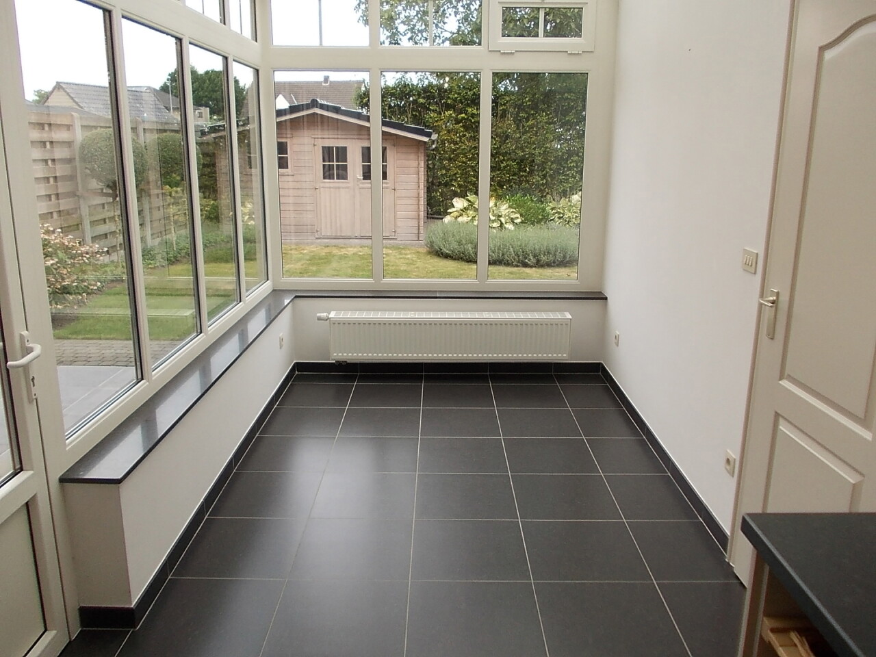 EETHOEK : 3,50 m x 2,25 m : tegelvloer, toegang tot terras en tuin.