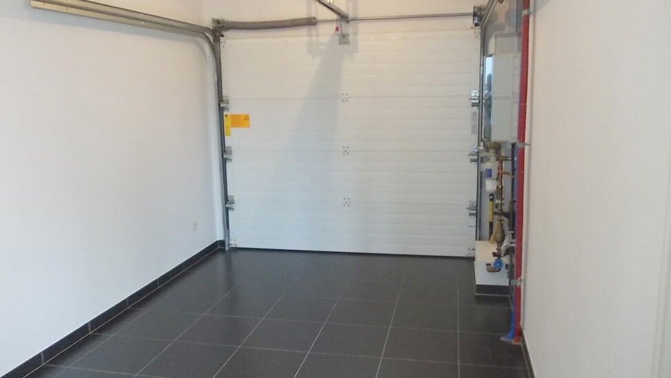 INPANDIGE GARAGE : met automatische sectionale garagepoort, tegelvloer.