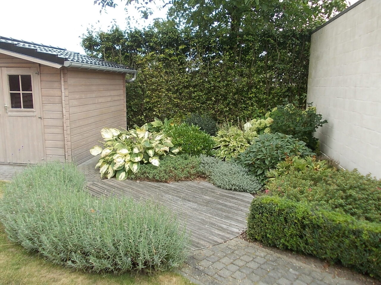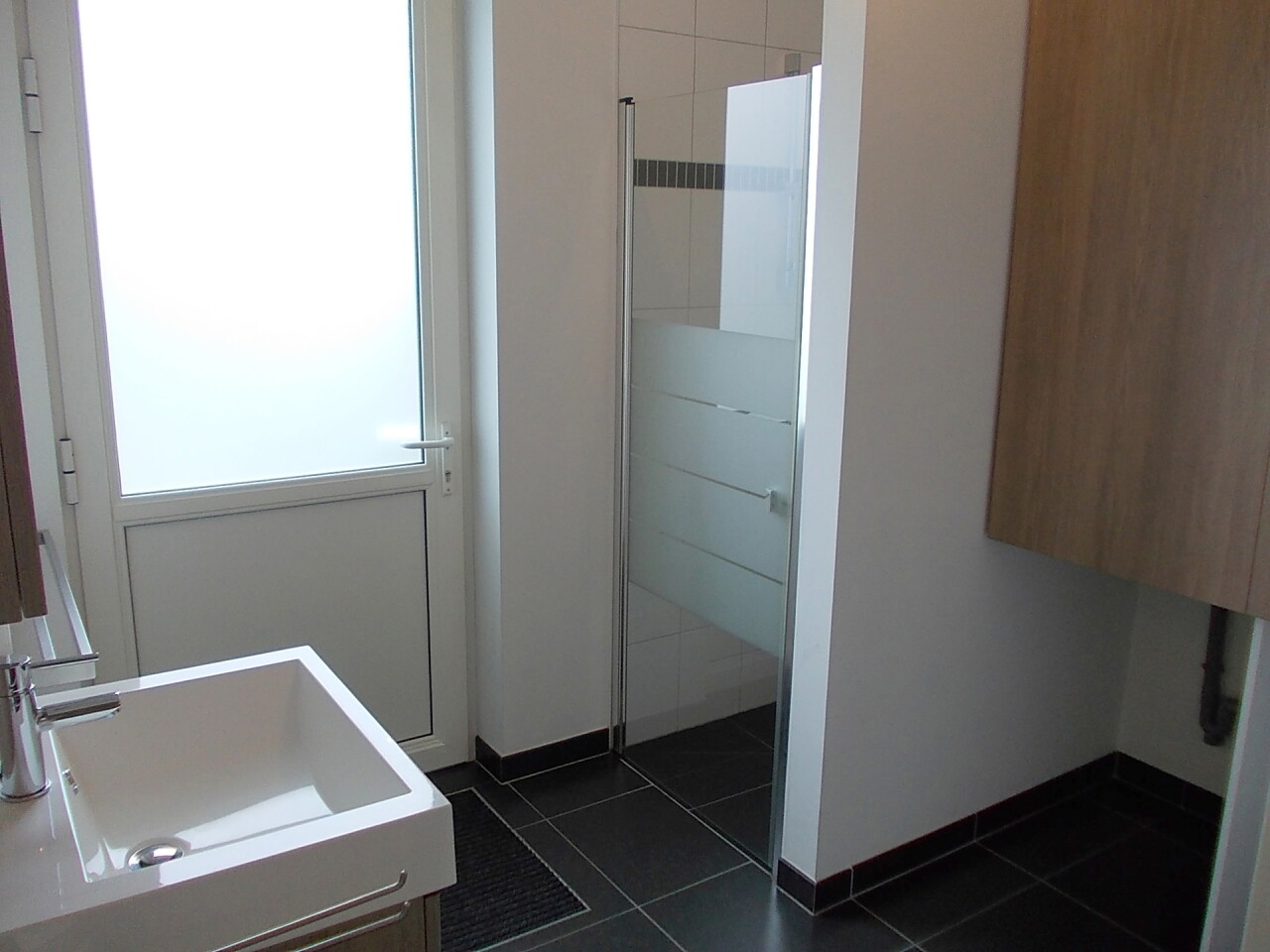 ACHTERINKOM : met voorziening voor wasmachine en droogkast, meubel met wastafel, douche, achterdeur naar terras en tuin.