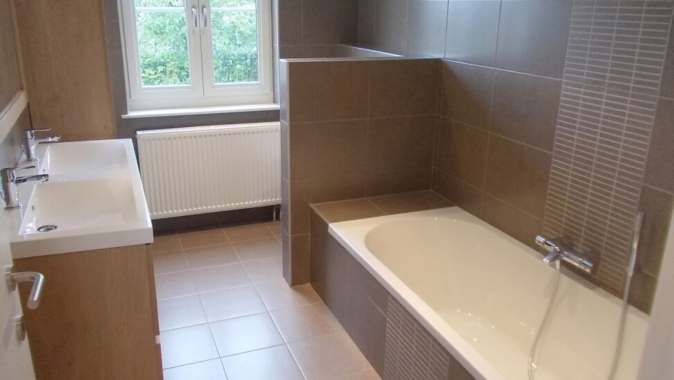 BADKAMER : met ligbad, badkamermeubel met 2 wastafels, toilet.