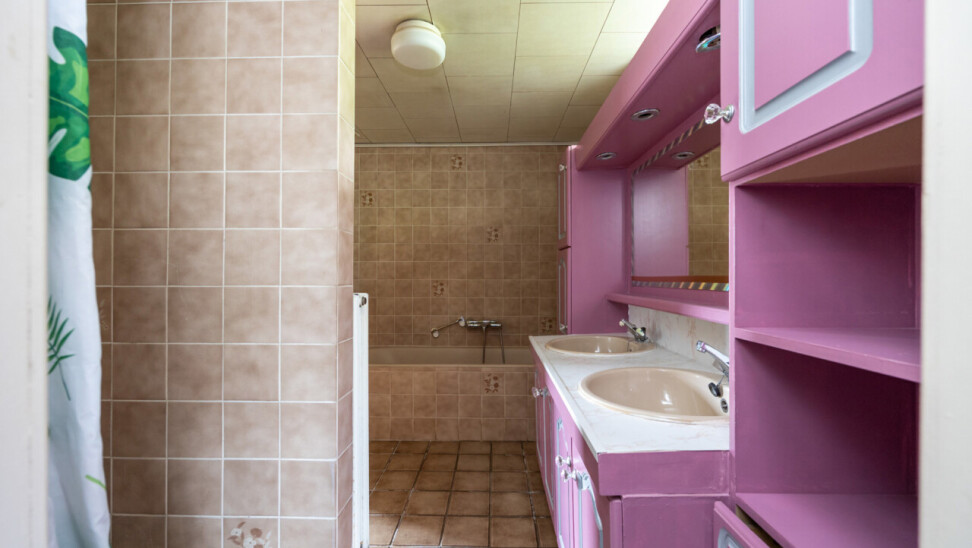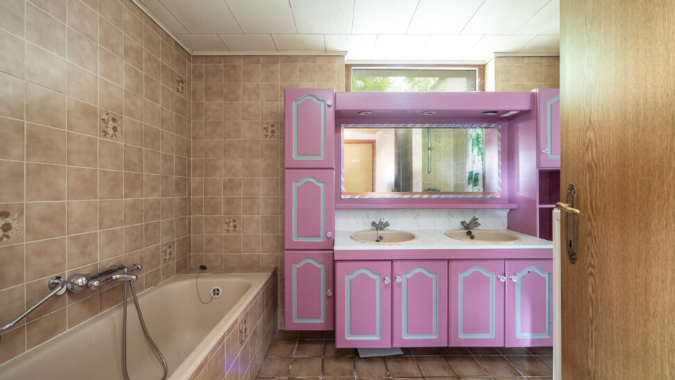 Badkamer : met ligbad, douche, badkamermeubel met 2 wastafels.