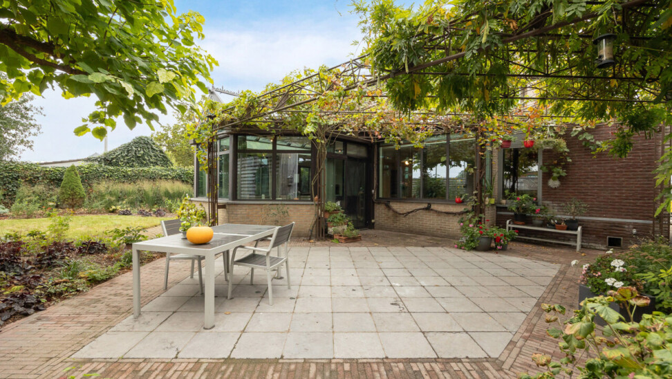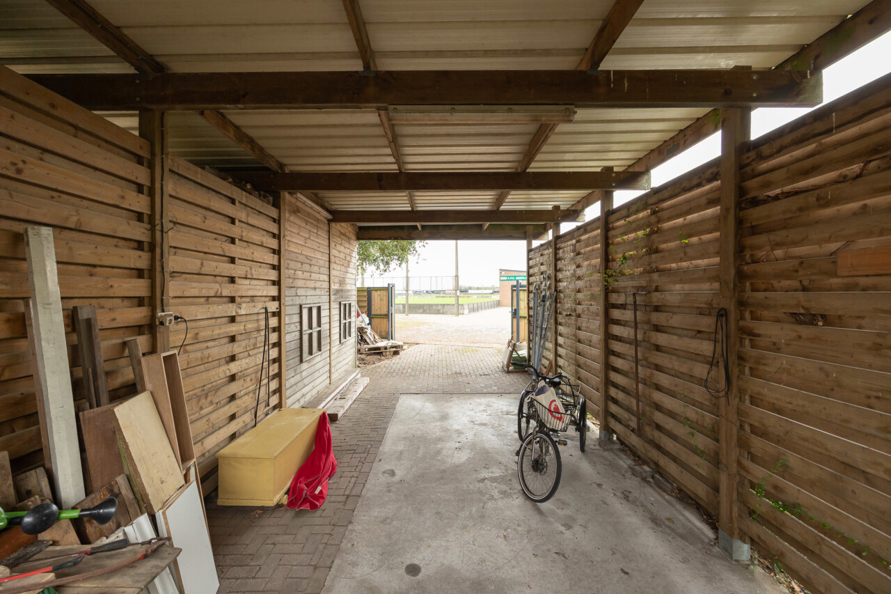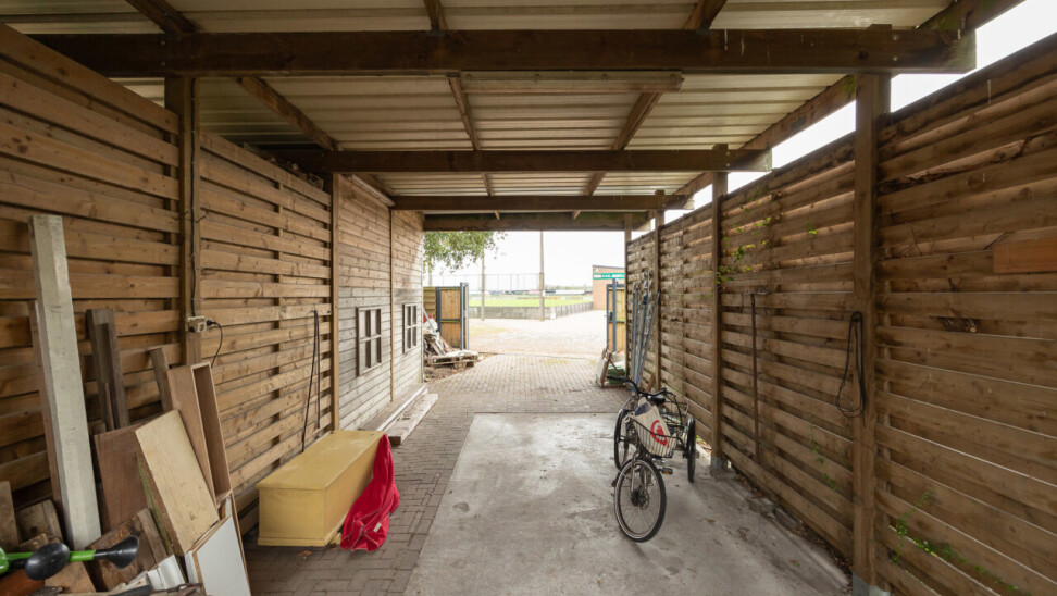 BUITEN : ruim terras, tuin op het zuidoosten. Ruime en hoge carport voor caravan of mobilhome 60,00 m².