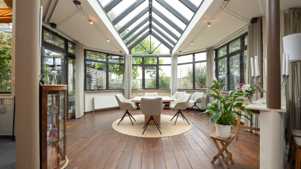 Veranda : 20,00 m² : eikenhouten plankenvloer, toegang tot terras en tuin.