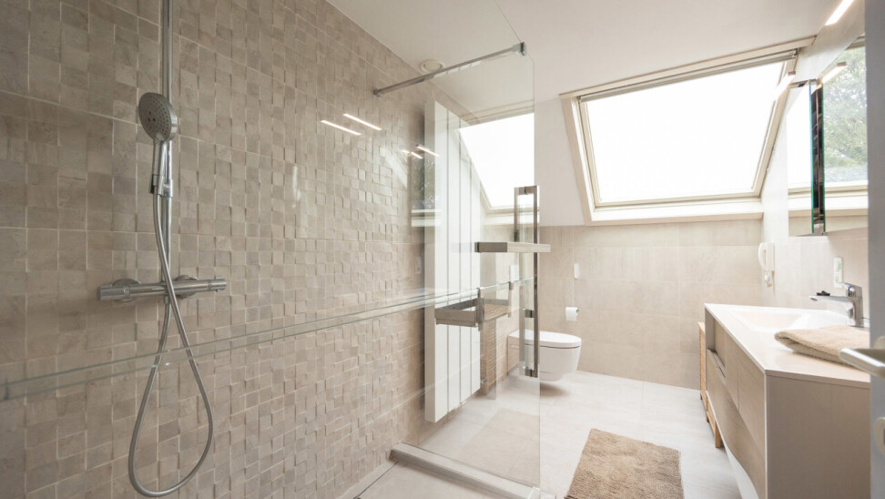 Badkamer : met inloopdouche, badkamermeubel met wastafel, toilet.
