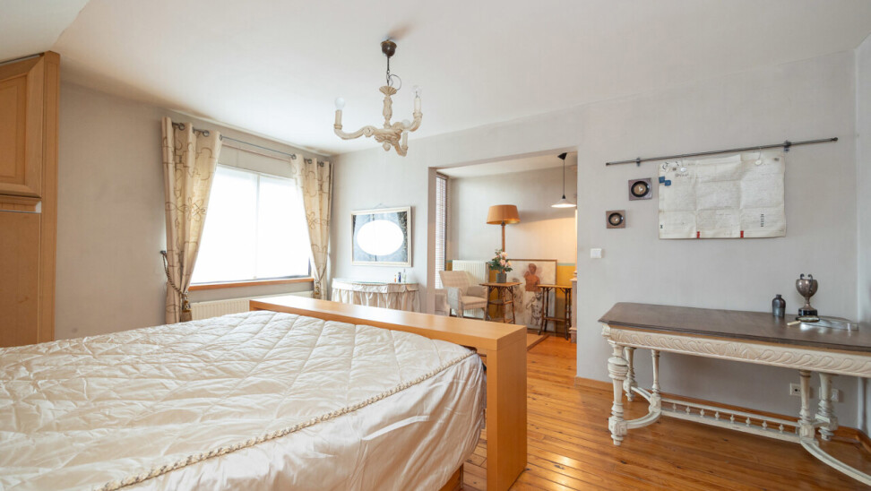 Slaapkamer 2 : rechtsachter : 25,00 m² : ruime ouderslaapkamer : plankenvloer.