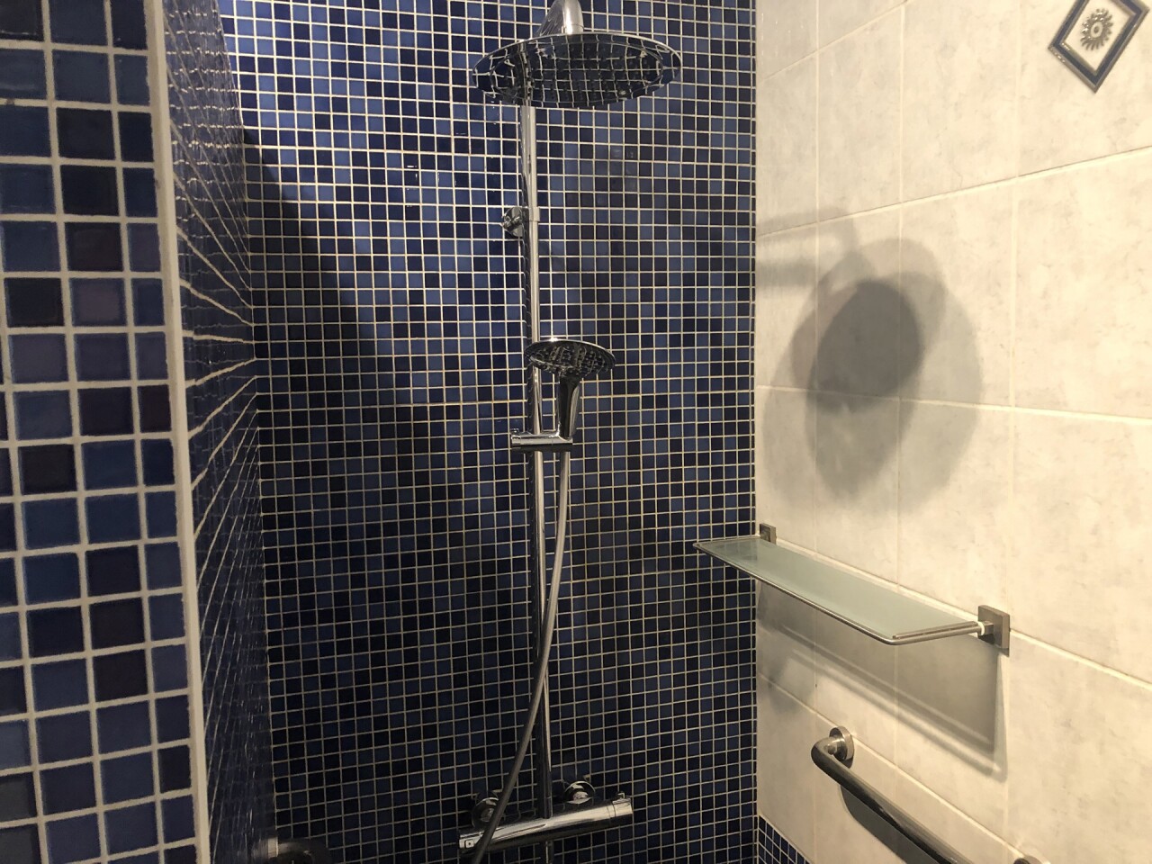 Badkamer : vernieuwde badkamer : inloopdouche, badkamermeubel met 2 wastafels.