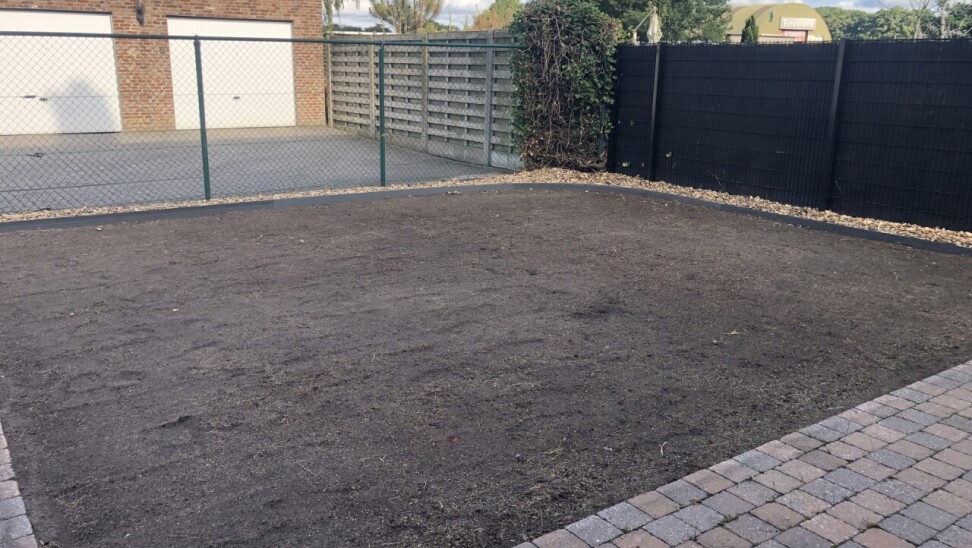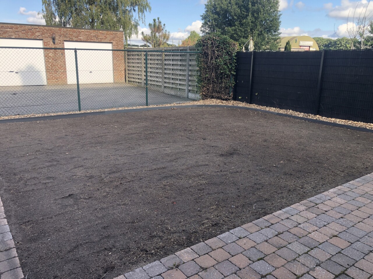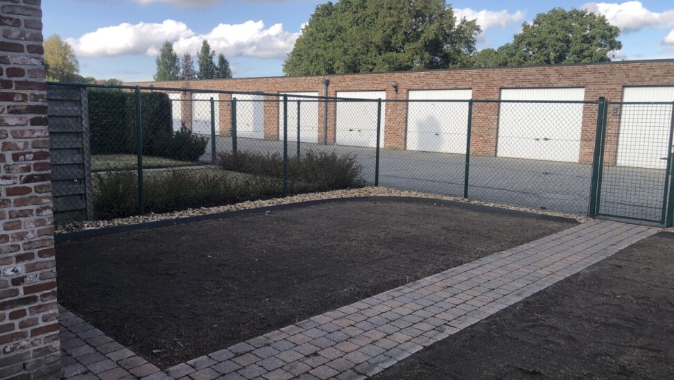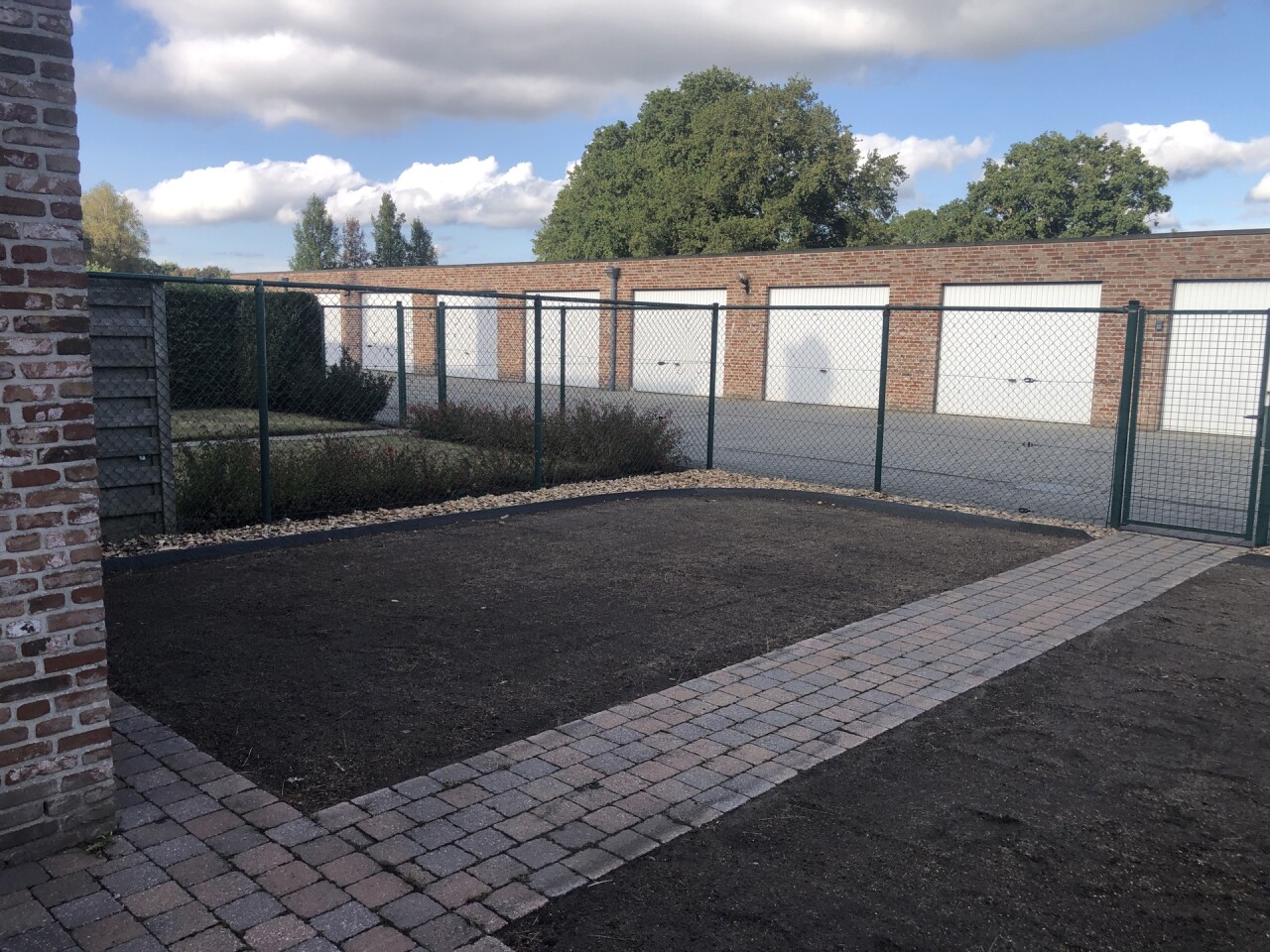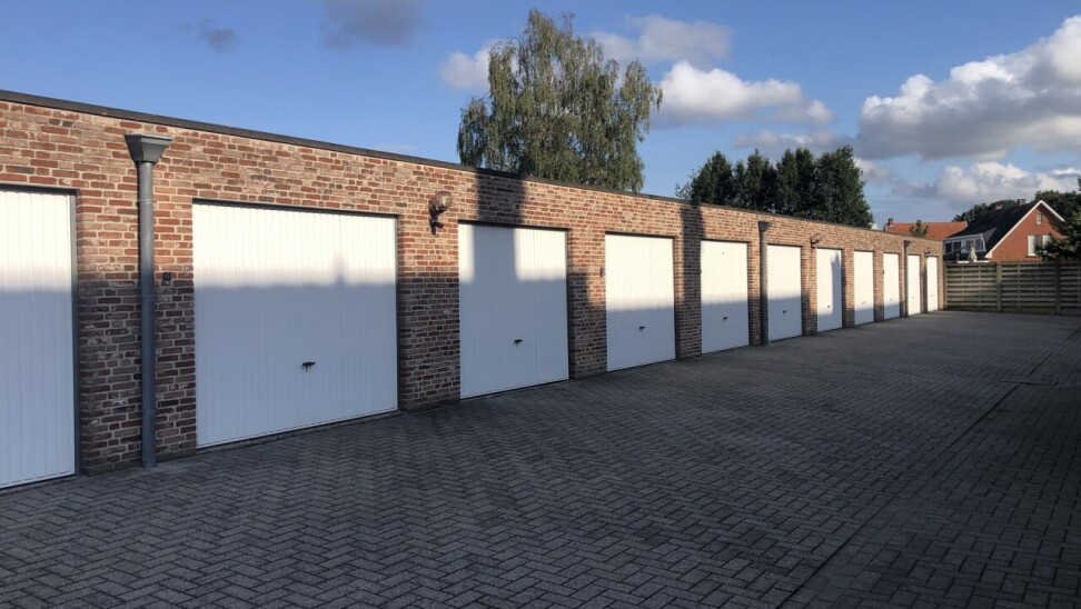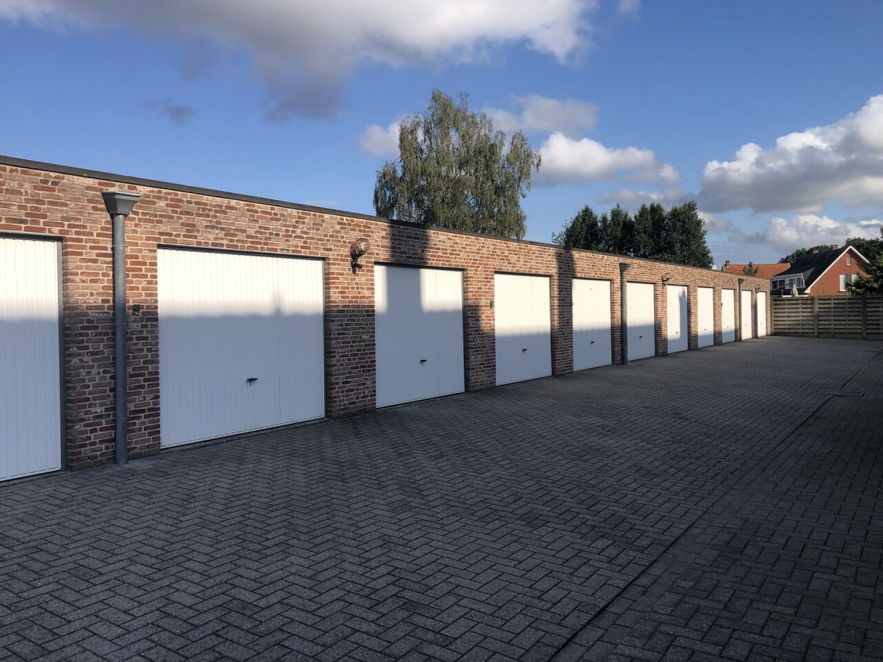 Garage : (voorlaatste garage van rechts) : 6,50 m x 3,25 m : gemetselde garage met kantelpoort.