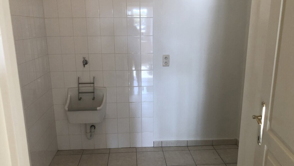 Wasplaats : aansluitpunt voor wasmachine, Vaillant aardgas combi-ketel, uitgietbak.