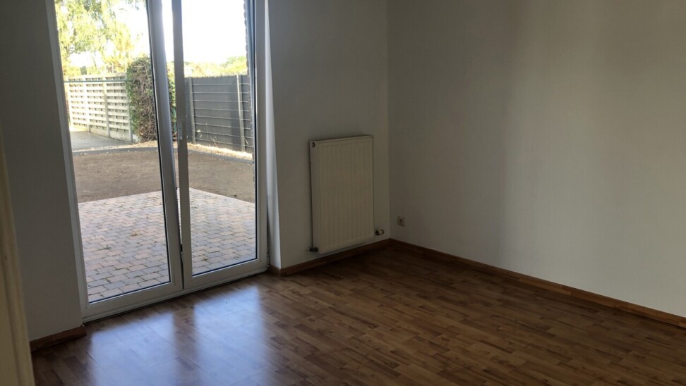Verzorgd gelijkvloers appartement met 2 slaapkamers, terras, tuin en garage.