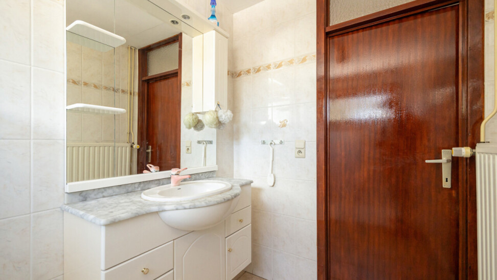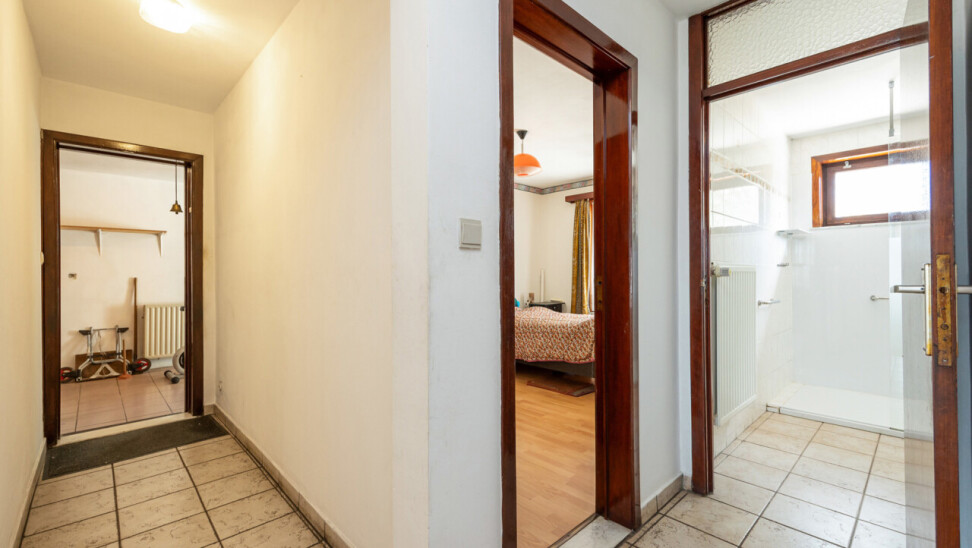 Nachthal : tegelvloer, 2 ingemaakte kasten en toilet.