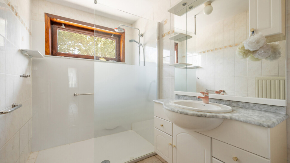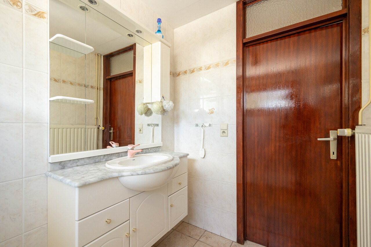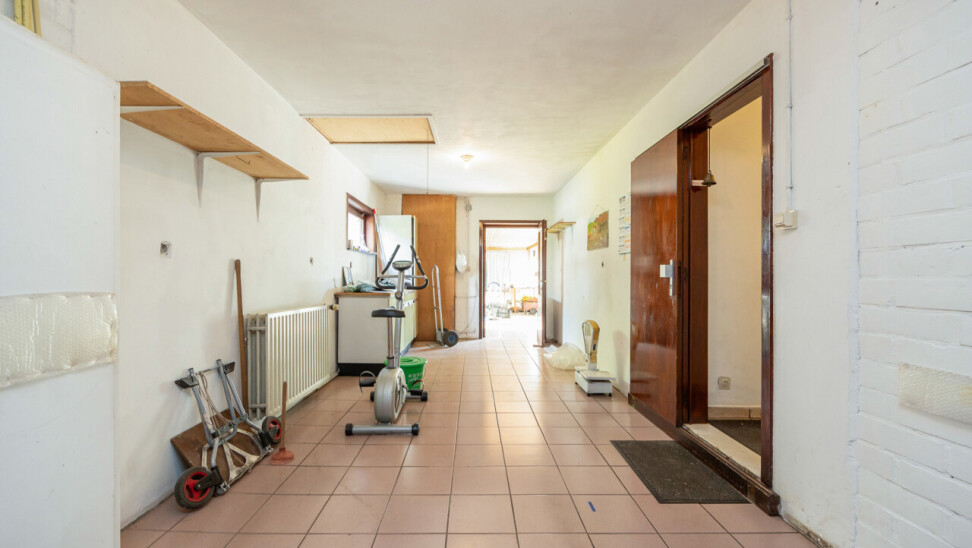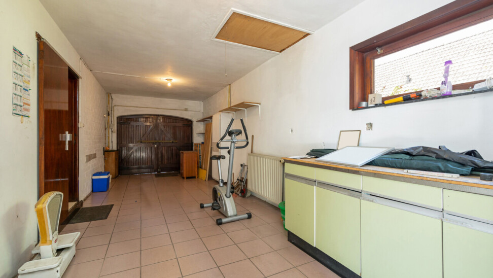 Inpandige garage : 8,50 m x 3,00 m : tegelvloer, valtrap naar de zolder.