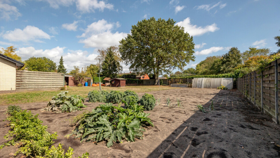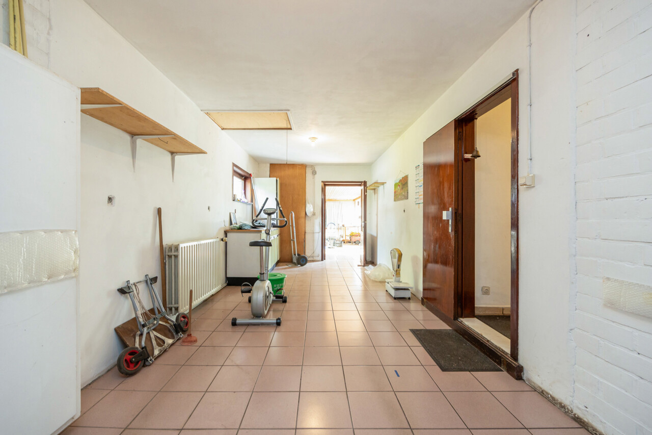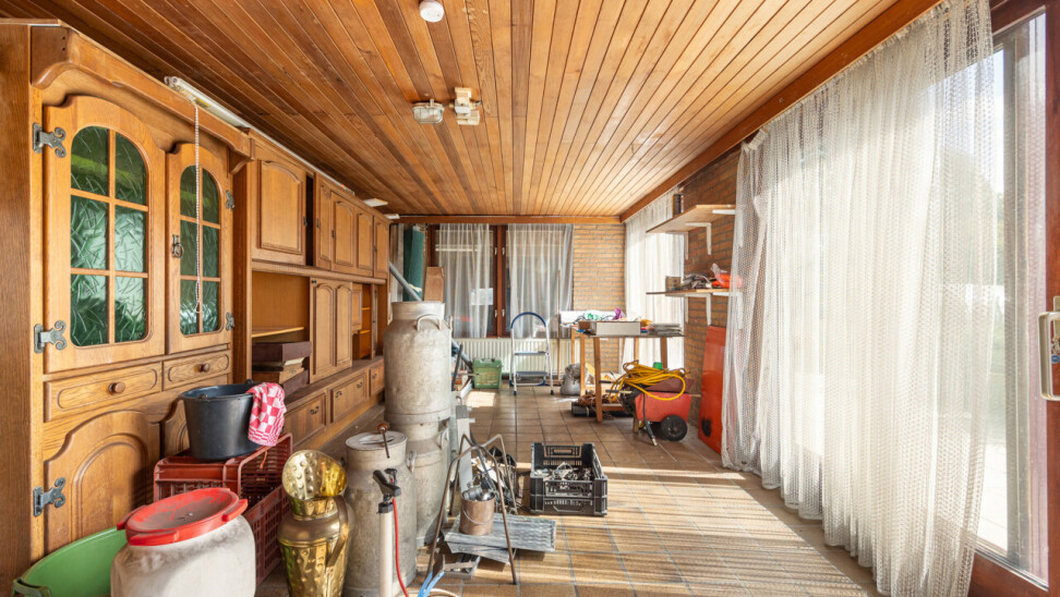 Achter de garage : tuinkamer / berging : 7,50 m x 3,50 m. Naast en achter de tuinkamer : berging circa 60,00 m² totaal.