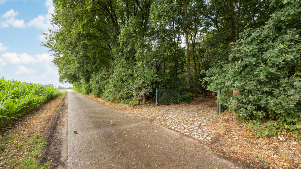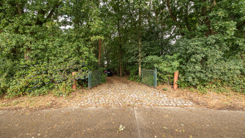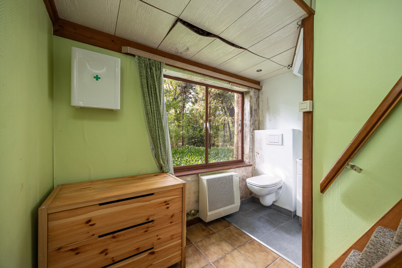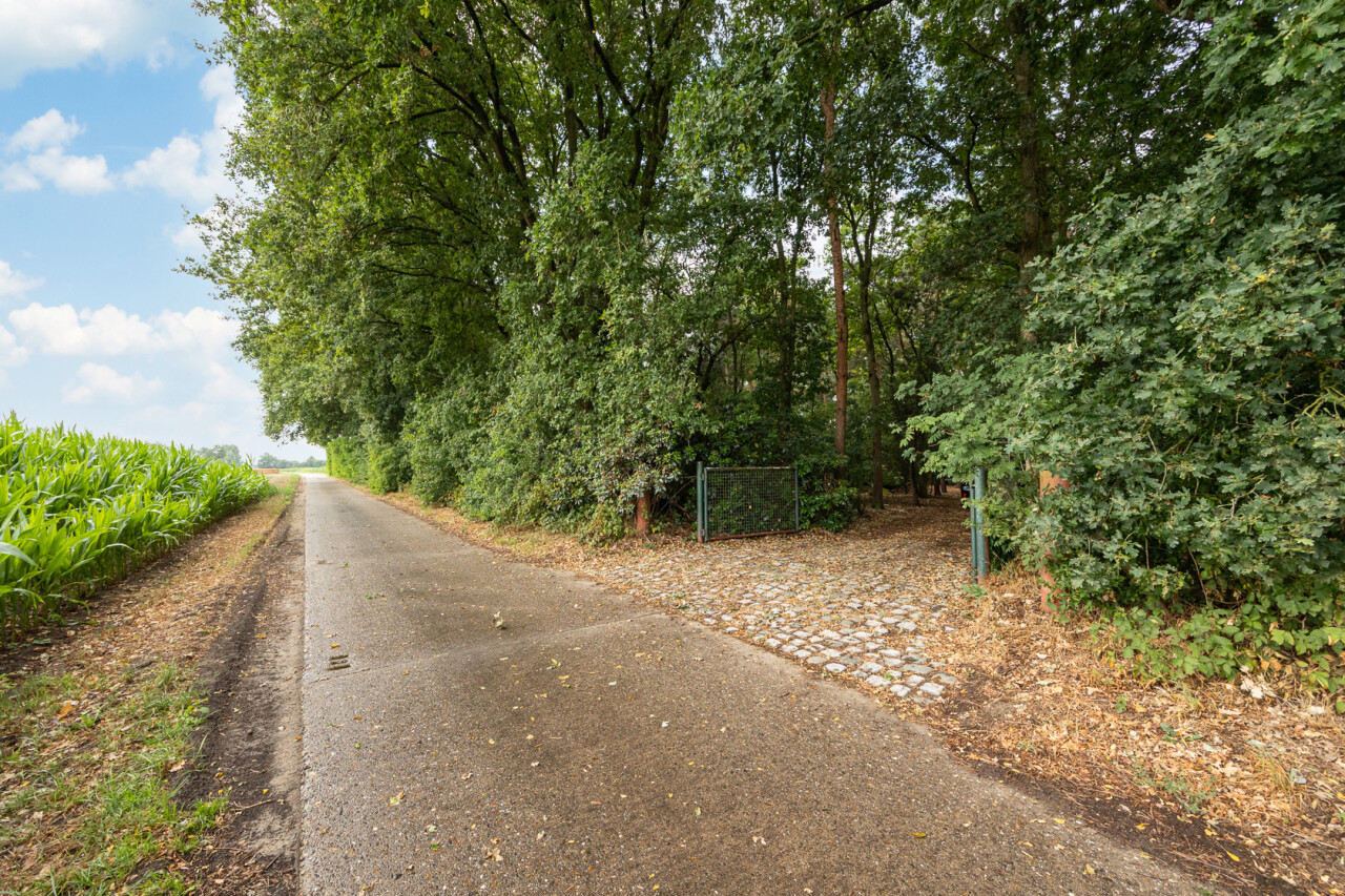 Buiten : oprit met metalen toegangspoort. Grasland - boomgaard met fruitbomen / dennenbomen bos / buitentoilet met septische put.