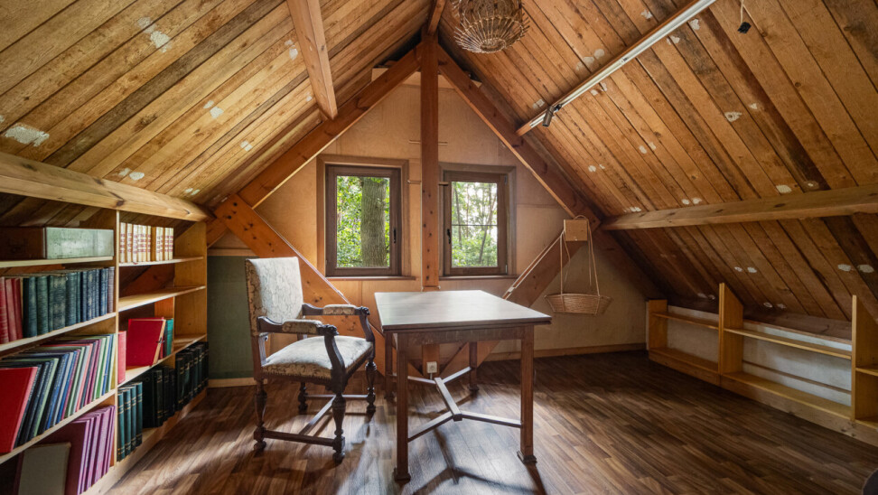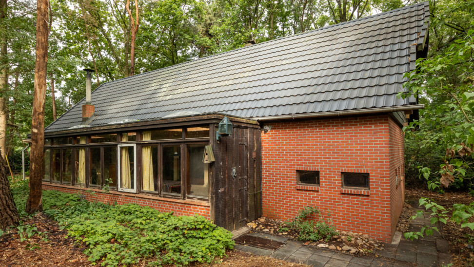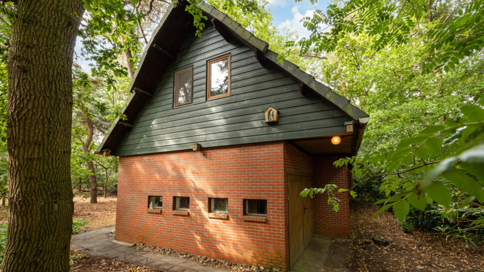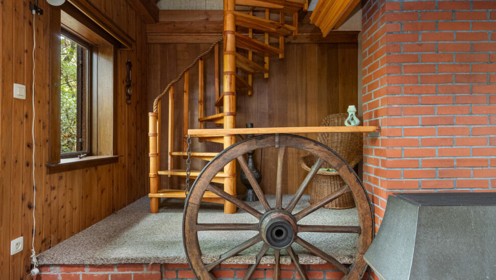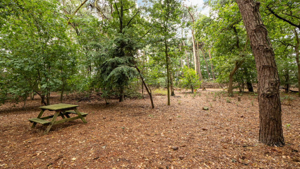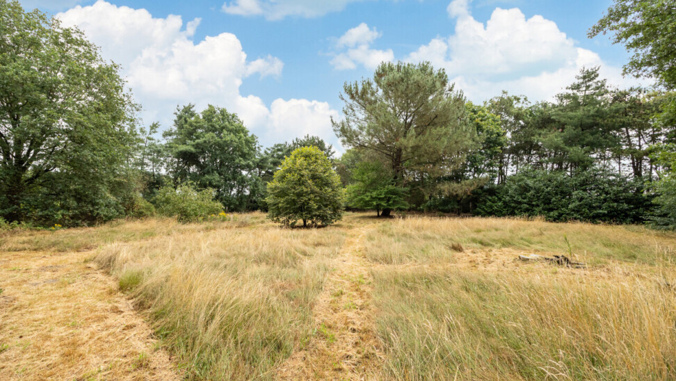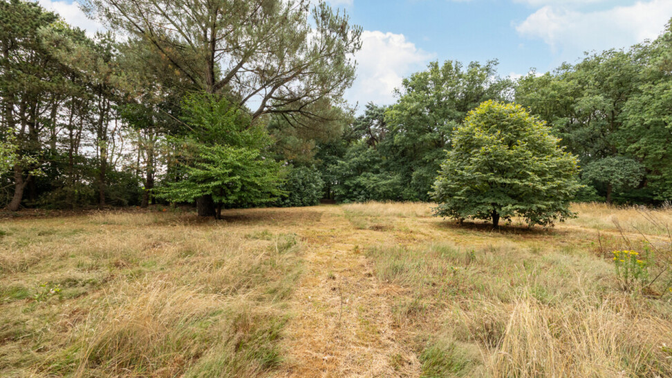 Buiten : oprit met metalen toegangspoort. Grasland - boomgaard met fruitbomen / dennenbomen bos / buitentoilet met septische put.