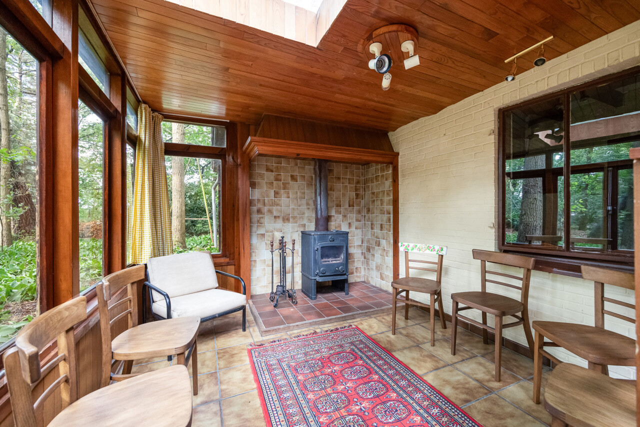 Veranda : 8,80 m x 2,75 m : tegelvloer, gaskachel, houtkachel.