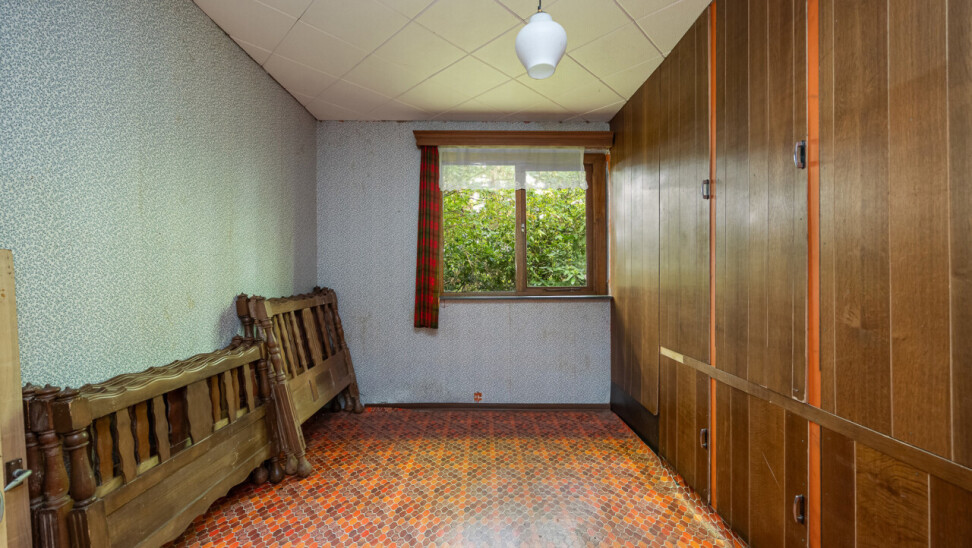 Slaapkamer 2 gelijkvloers : 3,75 m x 2,50 m : met ingemaakte kasten, novilon vloerbekleding.