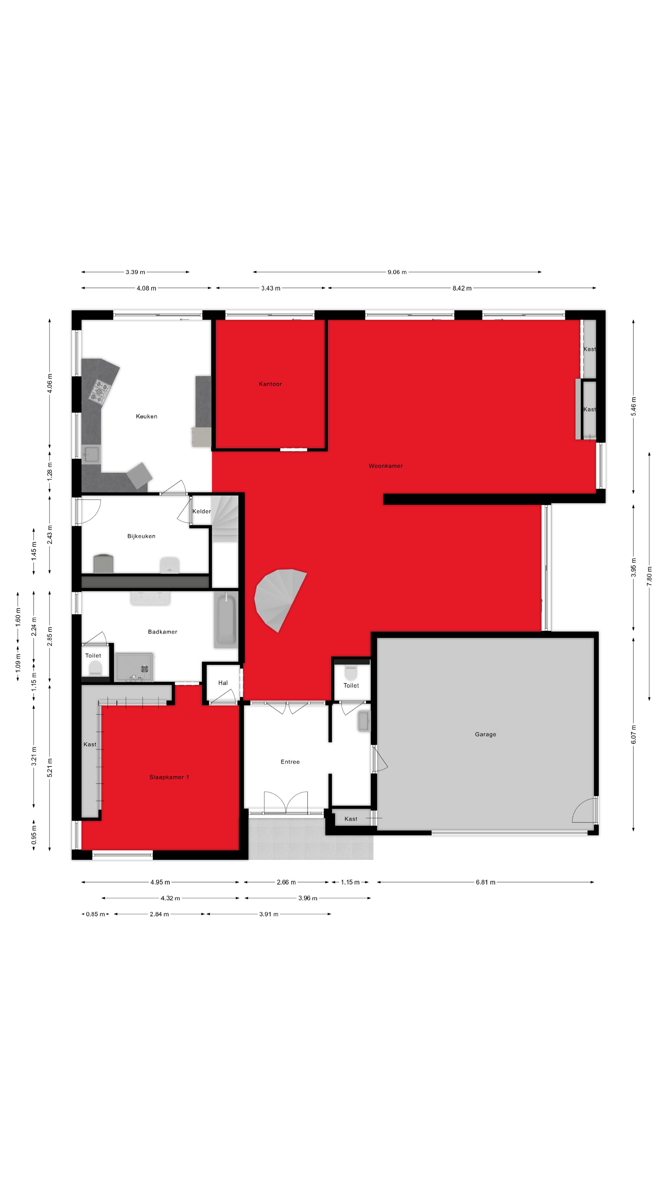 Kantoor : bereikbaar vanuit de woonkamer / schuifraam naar terras.