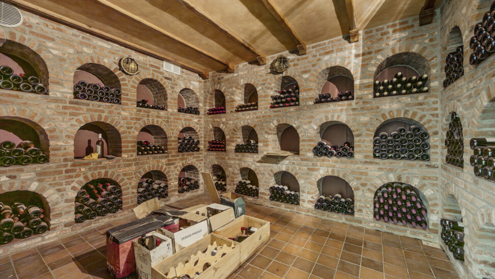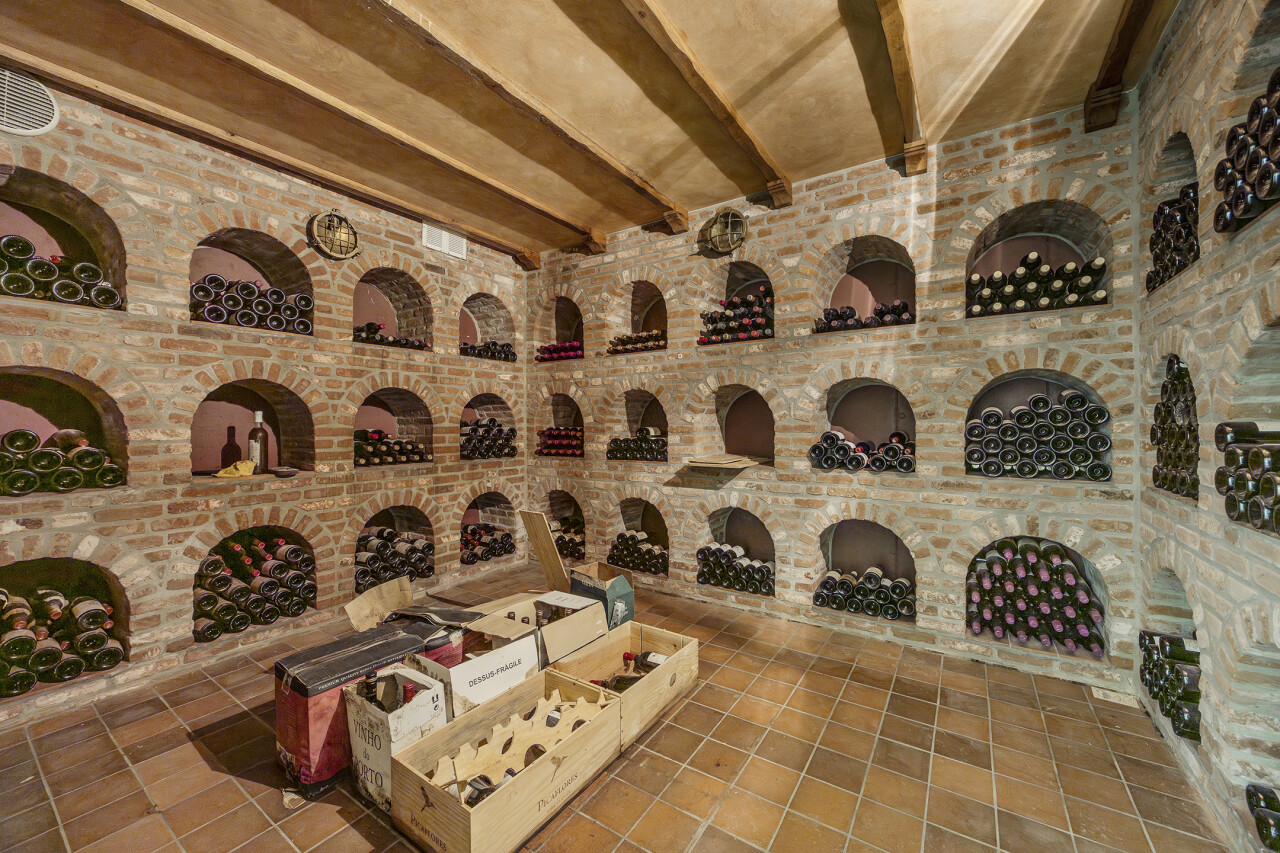 Kelder : op stahoogte en ingericht voor wijnopslag.