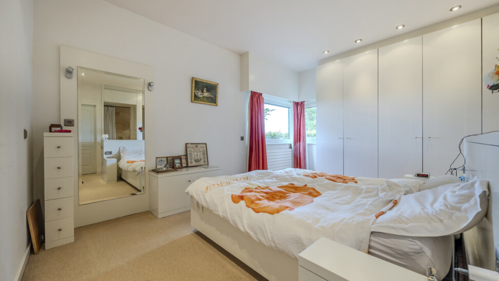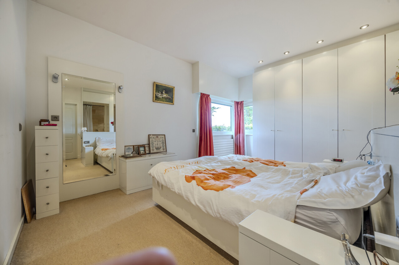 Masterbedroom (gelijkvloers) : kastenwand in L-vorm / toegang tot badkamer.
