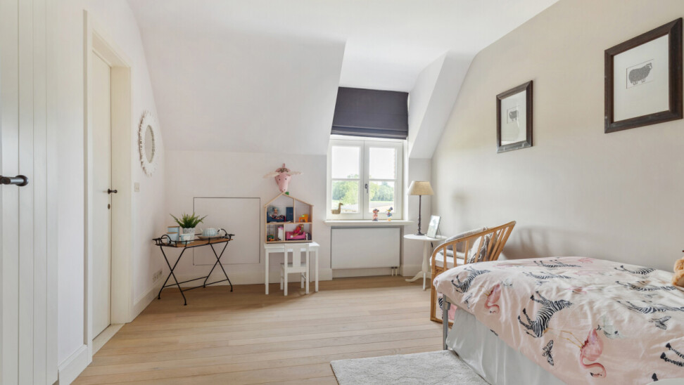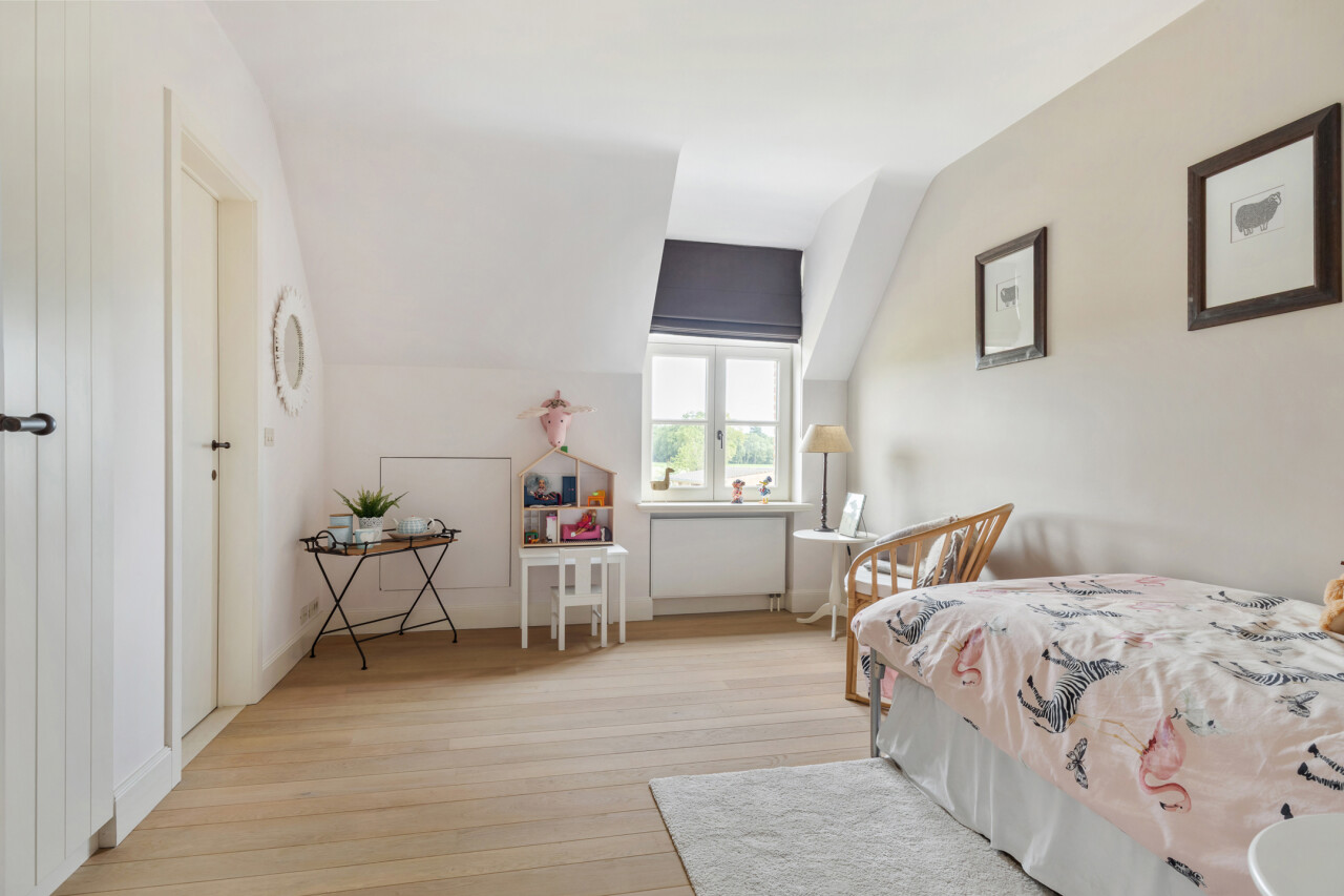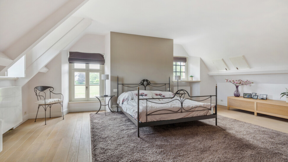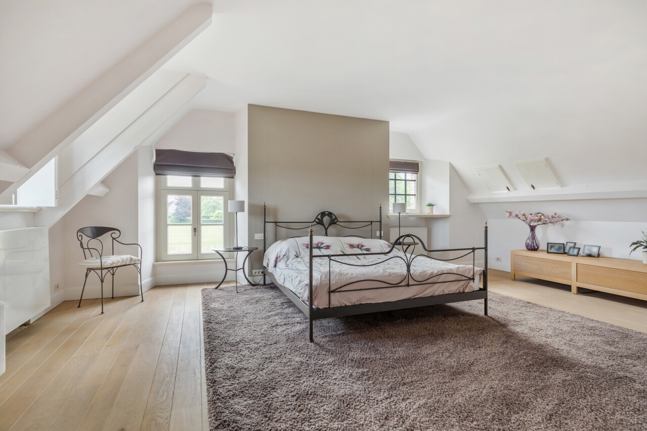Slaapkamer 1 : 6,60 m x 4,85 m : ruime ouderslaapkamer met vaste kastenwand en prachtig zicht op de tuin. Parketvloer.