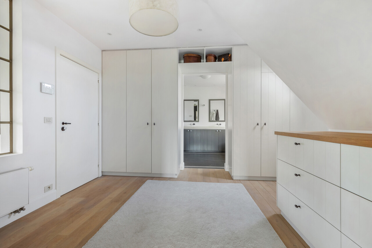 Aansluitend dressingkamer : met vaste kasten en open doorgang naar badkamer 1. Parketvloer.