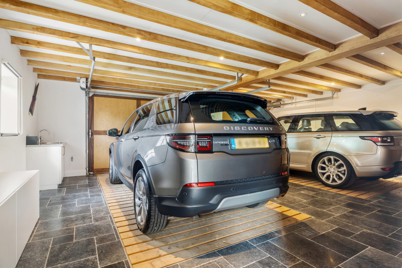 Gastenverblijf : zeer ruim luxe gastenverblijf of kantoorruimte of hobbyruimte met dubbele inpandige garage, volledig ingericht met woonkamer met open nok, ingerichte open keuken met kookeiland en alle keukentoestellen. Middels een houten trap in de inkomhal is de slaapkamer bereikbaar van dit gastenverblijf met wastafel en toegang tot een douche en toiletruimte.