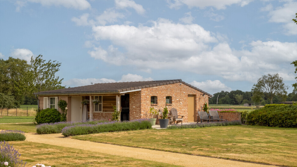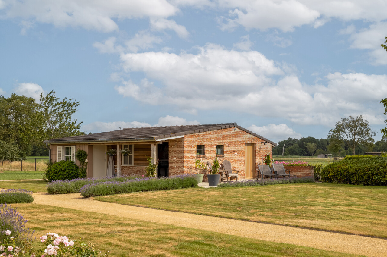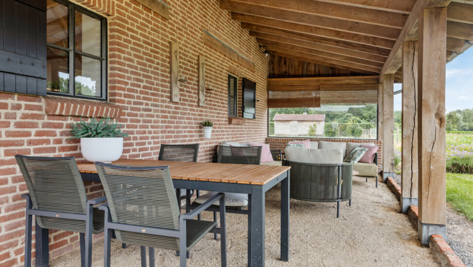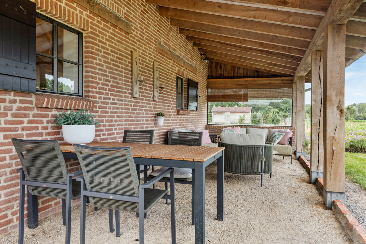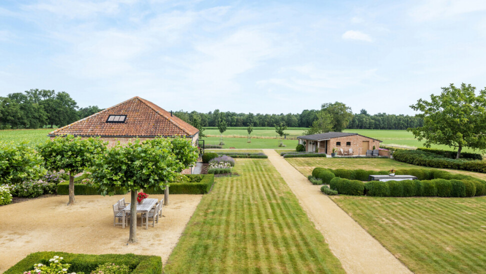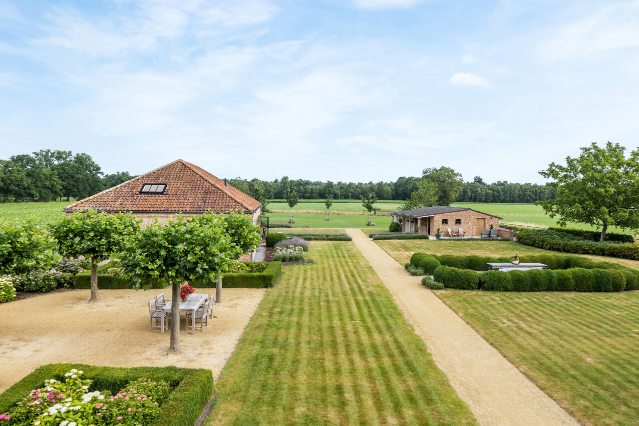 Tuin : prachtig aangelegde tuin met terrassen en vrije uitzichten. Achteraan deels weiland.