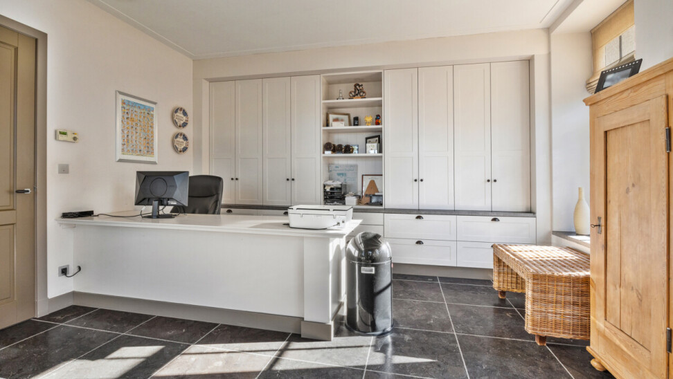 Studiekamer / kantoor : met ingemaakte kasten en toegang tot de woonkamer.