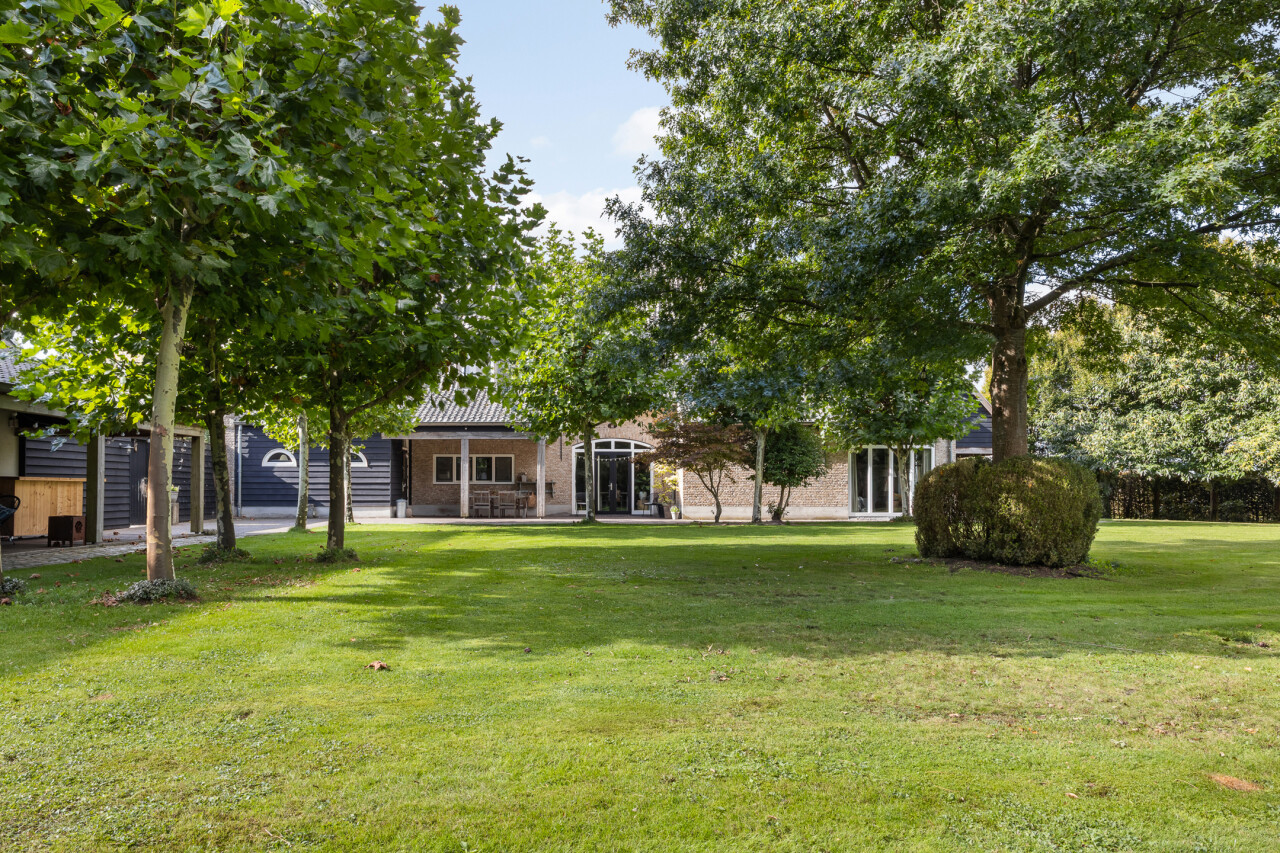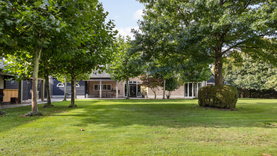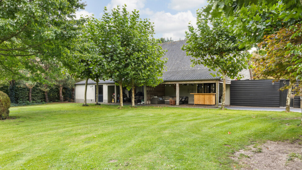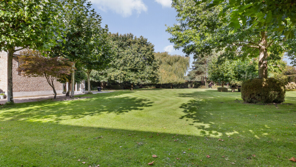 Tuin : een prachtige parkachtige tuin met beplanting en gazon, verschillende terrassen en overkapping waar het gezellig toeven is !
